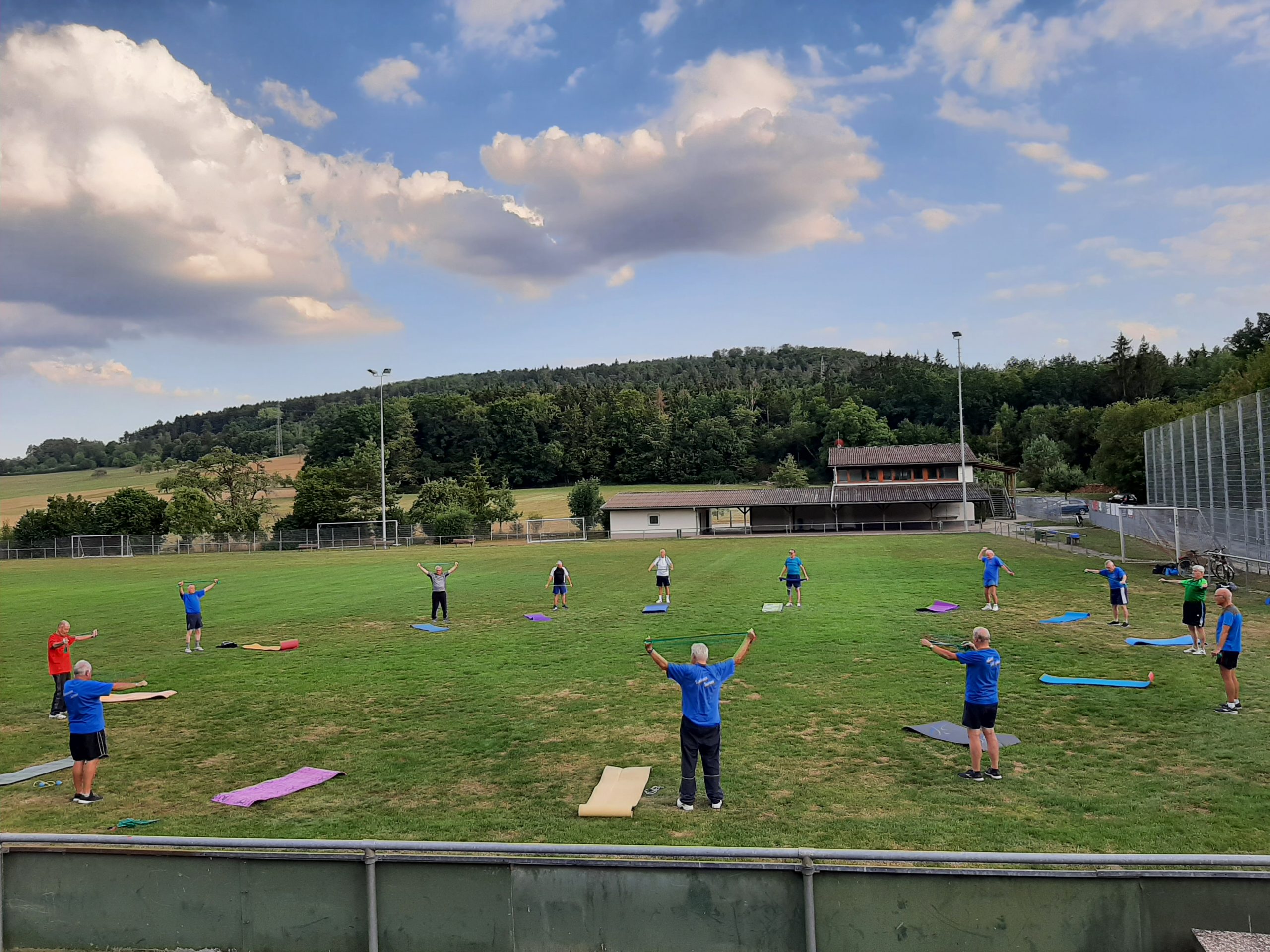 Unsere Übungsleiter Christian und Isabell fördern unsere Beweglichkeit und Ausdauer.