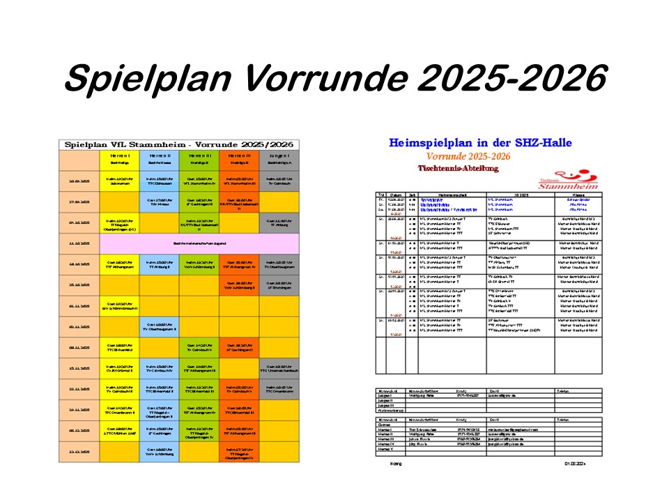 Tischtennis – Spielplan